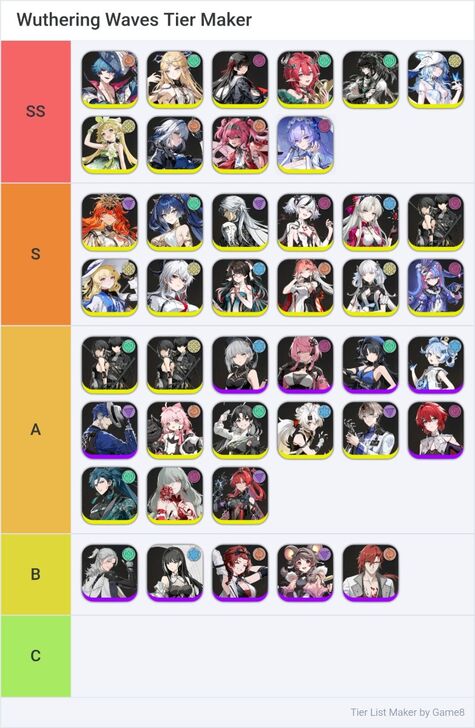 Game8's Wuthering Waves (WuWa) tier list maker. Create, submit, and vote for community tier lists here!