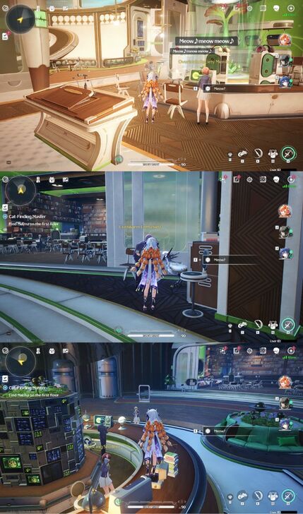 Some extra info! My cat was at the location 2 of the first part, I pet it's head and it turned out to be at the location 2 of the second part. HOWEVER, she wasn't there immediately. Not sure if it was because it was day and now it is night, or if I just needed to pass time again.... The photo attached shows all the FAKE locations I found!
