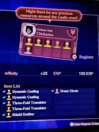 It is used in the Collectopaedia Cards for Chickadee from Colony Iota. She is asking for two that have the yellow rarity stripe on them.