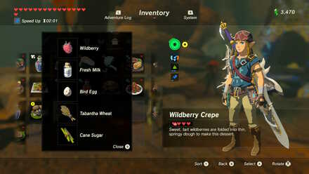 There are no effects for this dish in game, that's why there are no effects listed for it here. It uses all 5 slots and Wildberries have no effect either, so there is no space to give it an effect. Hope this helps
