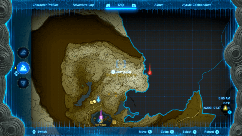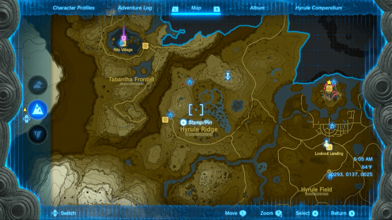| Rito Village | -3619, 1796, 0186 | Tabantha Frontier |