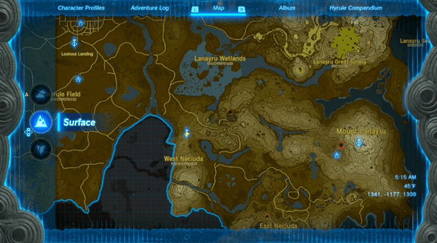 The Surface is the main map of Tears of the Kingdom, where Skyview Towers, Stables, settlements, and most Shrines are found. You may also encounters caves, cavern systems, and ruins near hills and cliffsides when exploring.