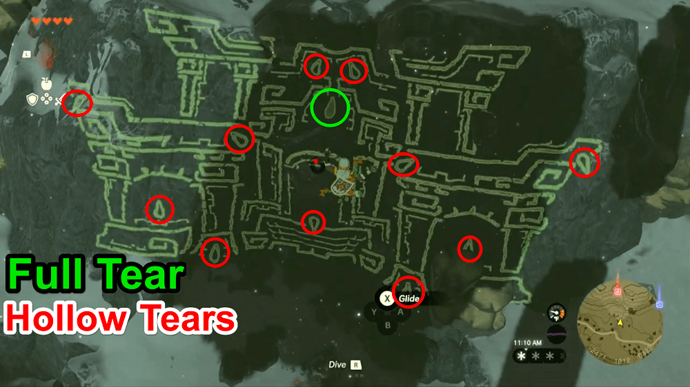 To “activate” Geoglyphs, Link must locate the TotK equivalent of the glistening lights found in BotW. These Dragon's Tears come in the form of small pools of emerald-colored water that must be interacted with to “complete” a Geoglyph.