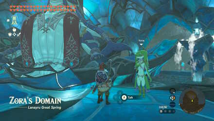 It should be noted that if you are on an older version (I am on v1.0.0), it is NOT a good idea to get the Vah Ruta Divine Helm BEFORE getting the "Secret Treasure Under The Great Fish" Side Quest activated by Sidon. If you have already found it, Sidon does not appear in the throne room where he normally would be, and then cannot give you the Side Quest, locking you out from achieving 100%, until you update the game.
