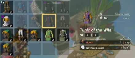 10 Acorns are required for all Tier 1 upgrades for the "of the Wild" armour set, totalling 30 Acorns (plus the elemental dragon's scales) to upgrade the set to Tier 2!