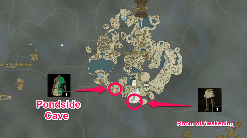 The Archaic Tunic can be found in a chest in Pondside Cave in the Great Sky Island with coordinates (0239, - 1558, 1354). You can fast travel to In-isa Shrine and head southeast of the shrine to reach the cave's entrance.