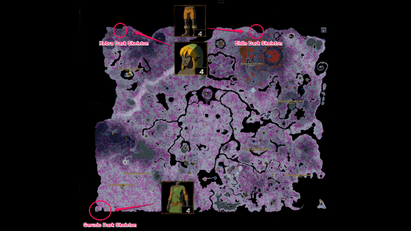 Get the Trousers of the Wild by starting at the Scorching Coliseum in the Eldin Canyon Depths. Head northwest from the coliseum to reach the Eldin Dark Skeleton, near the edge of the map covered with gloom.