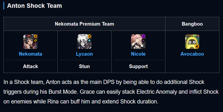 Very cool that anton team with lycaon, nekomata and Nicole... where does Anton fits in the team tho? The Bangoo slot?