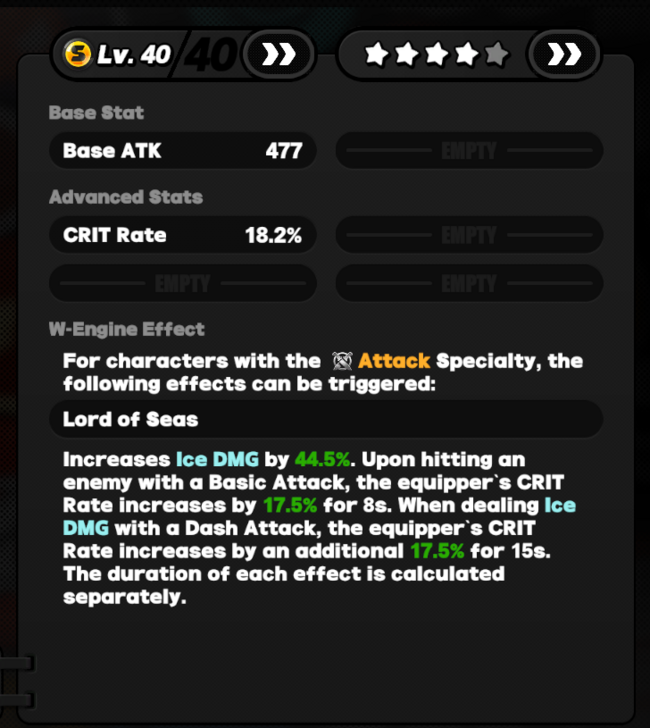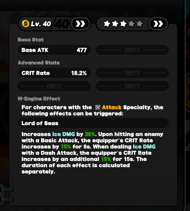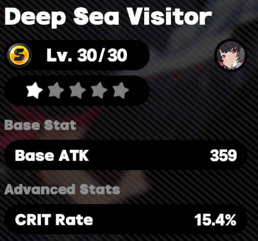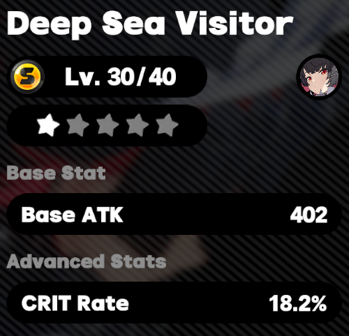 here's after max level cap unlock: base atk: 402, adv. stat: 18.2% crt rate