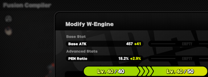 I think they're getting the base stat only after you increase the max level. i checked it with my w-engines and it seems to be the case