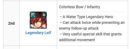 legendary Leif is listed as "Colorless Bow / Infantry" despite the fact he's Calvary