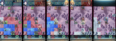 I got it with this team, Brave Dmitri, Brave Edelgard, Shamir, Legendary Claude. I don't think this is the only team. Claude works because survive a dagger. Shamir can survive a blue bow. Dmitri does a lot of work in the opening round. Edelgard keeps him alive in the middle stages with Reposition. Archers take out the bottom portion of the screen. Then finish it off slowly and carefully after the reinforcements have stopped. There are a lot of opportunities for somebody to get 1-hit killed.