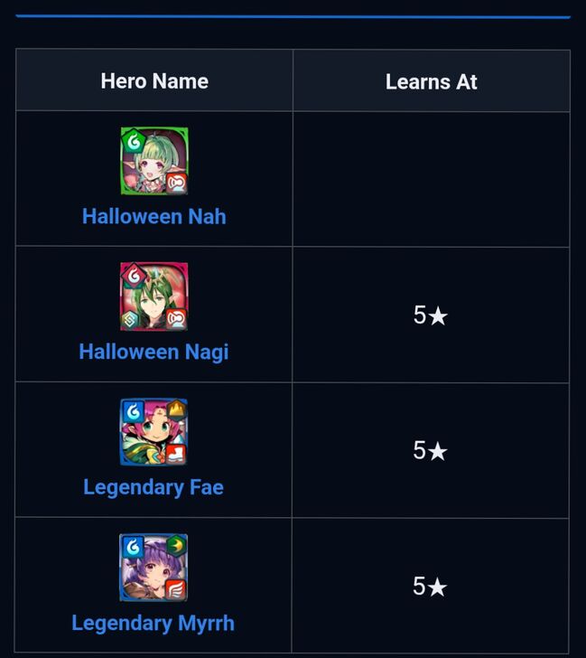 FYI, the "learns at" portion is blank for Halloween Nah. I'm not sure that it matters, but it still may be helpful for the webmaster to look into what went wrong here in case it happens again.