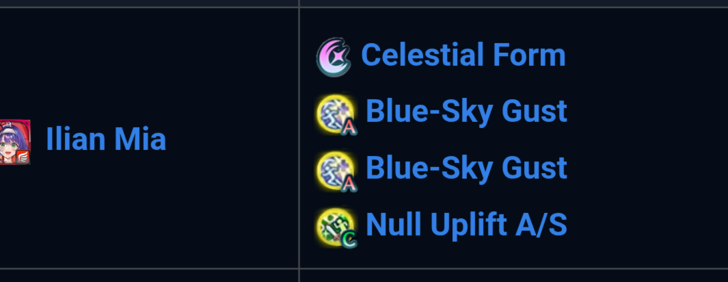 You have Mia's A skill listed twice instead of a B skill.