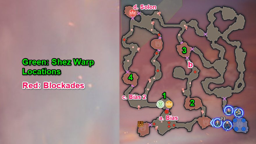 | 2 | ![]() Attack Shez Until He Warps to the Next Area! With the team you used to take down Bias, attack Shez until he and Byleth warp to a different stronghold. Refer to the map above to see the warp order of Shez and Byleth. The key to unlocking the gates before them is by defeating the Gatekeepers that stand in your way. |