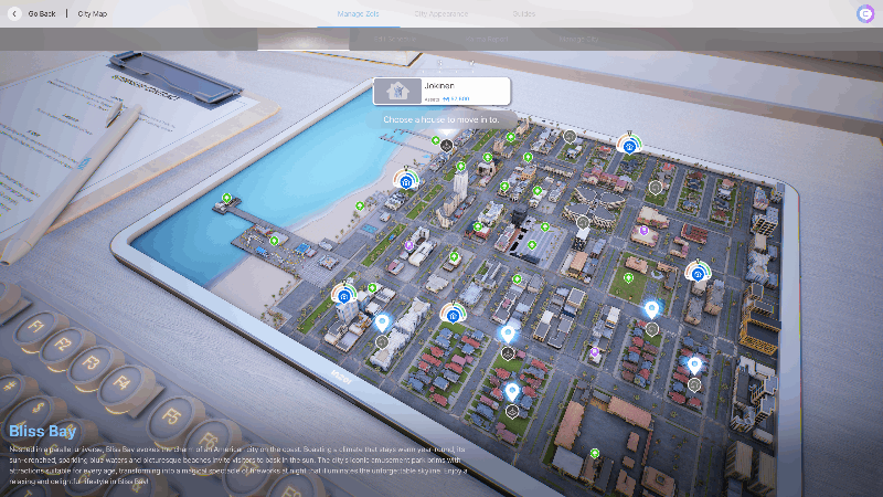 The locations listed above are unique to Bliss Bay, and can only be visited once you've selected the city as your residential address.